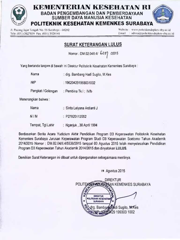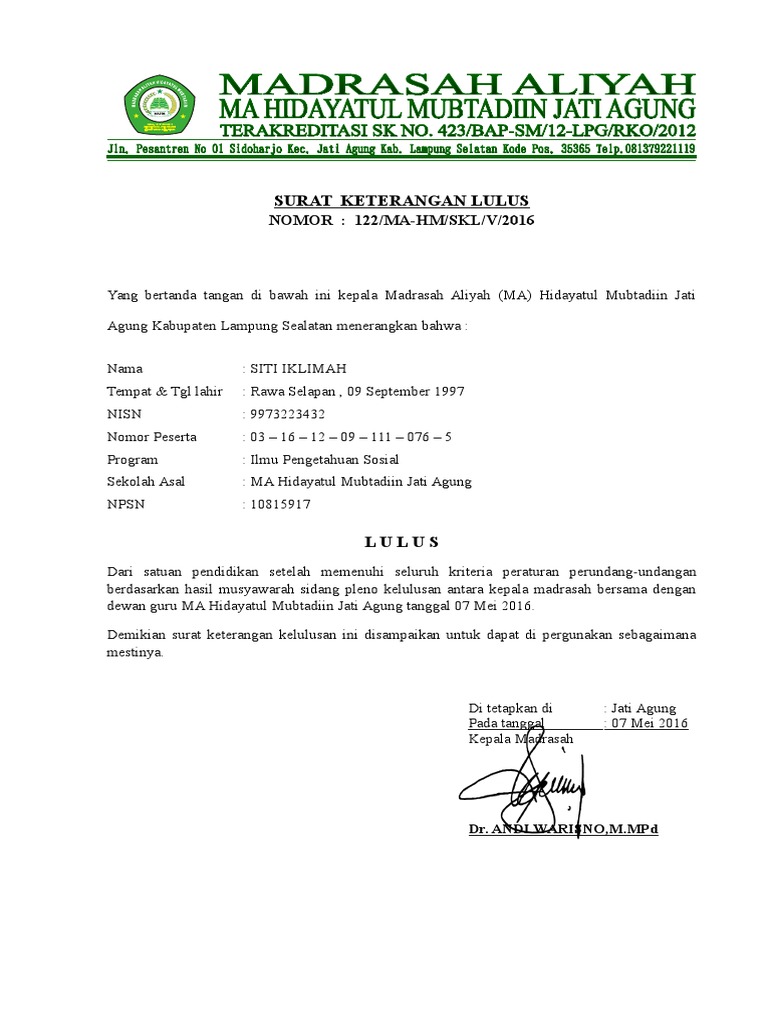 Contoh Surat Keterangan Lulus Sma 2020 Mariyadi Com