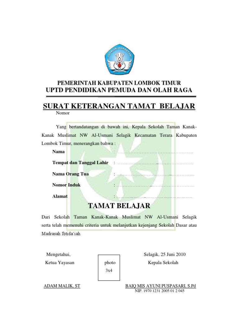 Contoh Surat Keterangan Tamat Belajar Paud Tutorial Lif Co Id