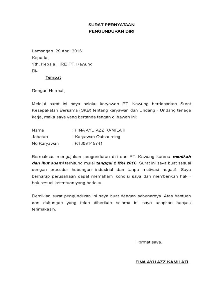 Contoh Surat Pengunduran Diri Kerja Outsourcing Contoh Lif Co Id
