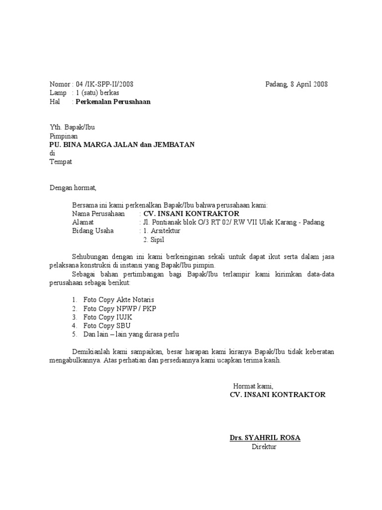 Contoh Surat Perkenalan Perusahaan Kontraktor 2 My Website Powered By Doodlekit