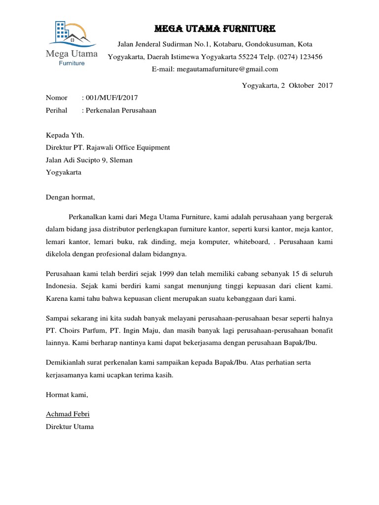 Contoh Surat Niaga Surat Perkenalan Perusahaan Edukasi Lif Co Id