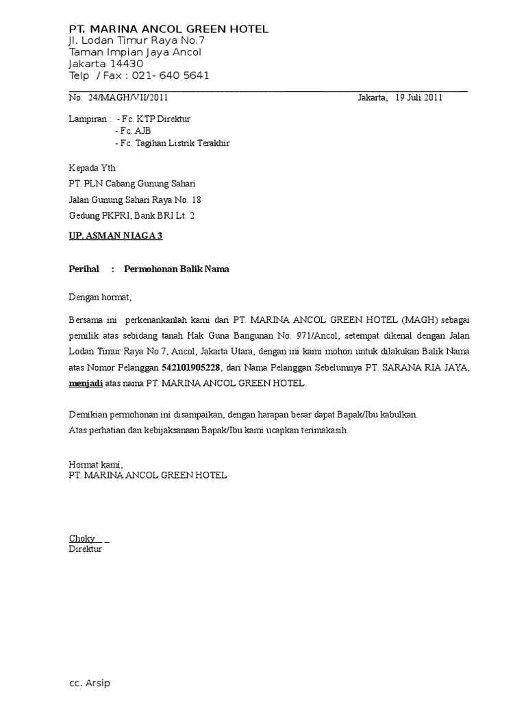 PLN Persero Kota Tasikmalaya Dengan Hormat Dengan ini saya disebut sebagai pengelola toko admin computer mengajukan permohonan kepada Bapak Manajer PT. Seperti fotokopi rekening listrik terakhir fotokopi ktp pemohon siapkan surat lainnya seperti surat kuasa surat perjanjian atau surat keterangan lainnya untuk menghindari kesalahan dan lembar. Contoh Surat Pemberitahuan UNBK Ke PLN Ujian nasional berbasis komputer UNBK bukanlah hal yang aneh di masa sekarang.