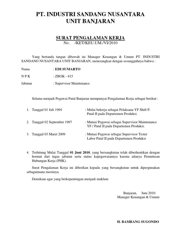 Contoh Surat Pengalaman Kerja Operator Download Kumpulan Gambar