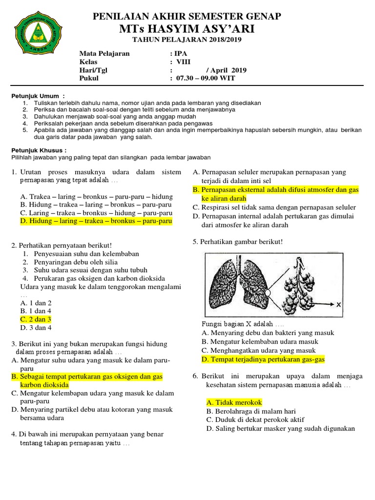 Latihan Soal Sistem Pernapasan Worksheet