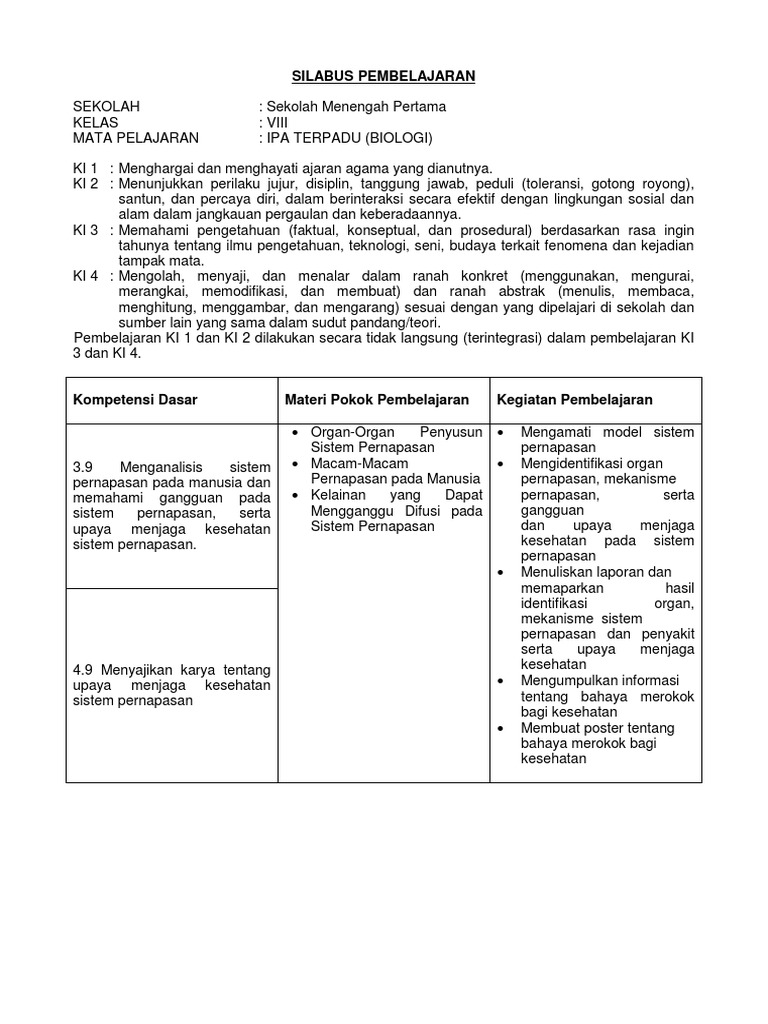 Doc Rpp Sistem Pernapasan Buron Nkp Academia Edu